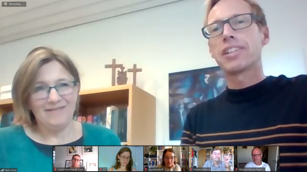Webinar-værter Bit Boel Buhl og Niels Hviid fra Gellerup kirke, tog de mange deltagere på digitalt besøg i et af Danmarks mest mangfoldige sogne.