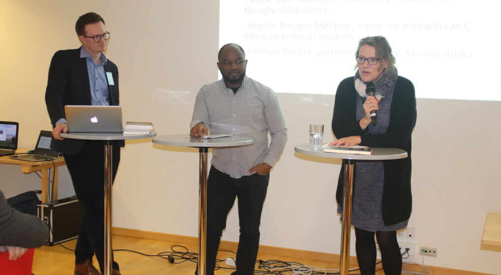 Konferencen var præget af mange gode input. Her fra Jeppe Bach Nikolajsen (Menighedsfakultetet), Clement Dachet (Mission Afrika) og Birgitte Rosager Møldrup (sogne- og migrantpræst i Jelling og Kollerup Vindelev). Foto: Michael Rønne Rasmussen.