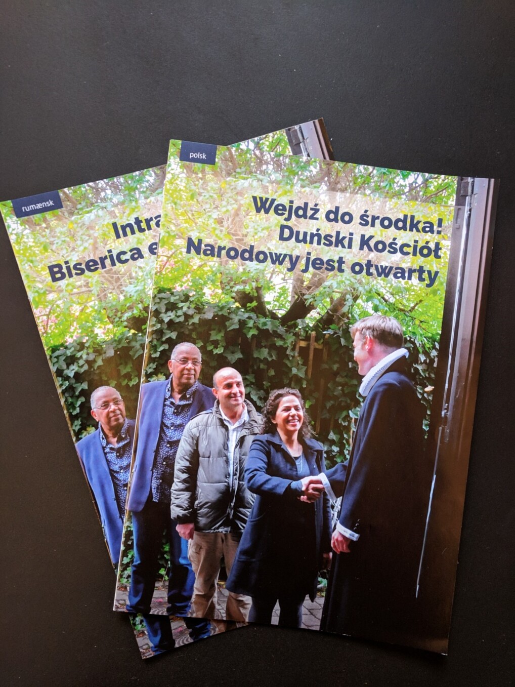Dernæst har vi valgt at oversætte folderen ”Træd indenfor – Folkekirken er åben” til polsk og rumænsk. Folderen kan bruges som introduktion til, hvad den Danske Folkekirke er. Folderen giver både et kort rids af kristendommens og kirkens historie i Danmark og fortæller, hvad den enkelte kan bruge kirken til: at folkekirken i Danmark er mere end højmessen søndag formiddag.