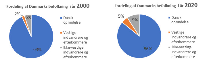 Fra 2000 til 2020, er der sket en fordobling af andelen af indvandrere og efterkommere.