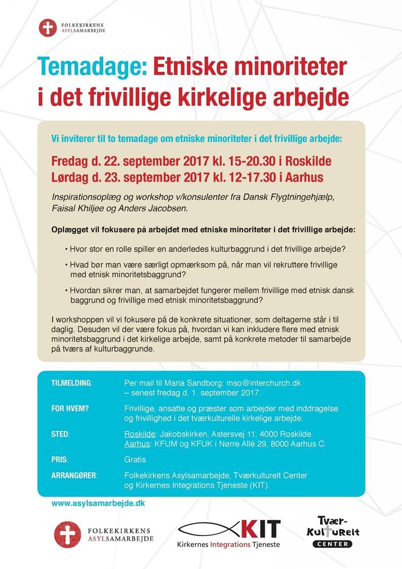 D. 22. og 23. september inviterer Folkekirkens Asylsamarbejde, Tværkulturelt Center og Kirkernes Integrations Tjeneste til temadage i Roskilde og Aarhus.