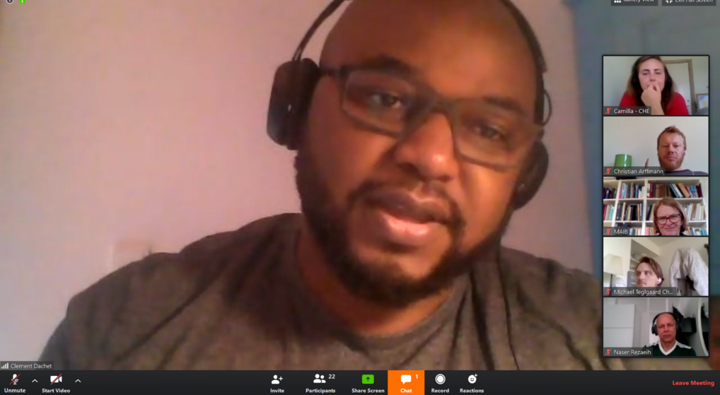 Ekspert i migrantmenigheder og konsulent hos Folkekirkens mellemkirkelige Råd, Clement Dachet, tog udgangspunkt i sin egen indvandringsoplevelse af Danmark. Et udefra syn på folkekirken viste sig at være enormt brugbart for webinar-deltagerne, der for det meste arbejder midt i krydsfeltet, hvor kirken møder flere forskellige kulturudtryk. Kristendom er trods alt en oversættelse af kultur, fortalte Clement, men "Hvem er det der skal give sig og skabe den første forandring - indvandrerne eller folkekirken?", lød oplægget til debat, da han gengav personlige og principielle eksempler på, hvor svært det egentlig er, for en national-forankret kirke, at transformere sig.