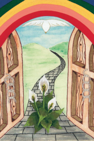 Forsidebilledet i liturgimaterialet vist ovenfor illustrerer brudte lænker som et tegn på retfærdighed, en åben dør der peger mod frihed samt en due og en lilje som symboler for Guds fred og tilgivelse.
