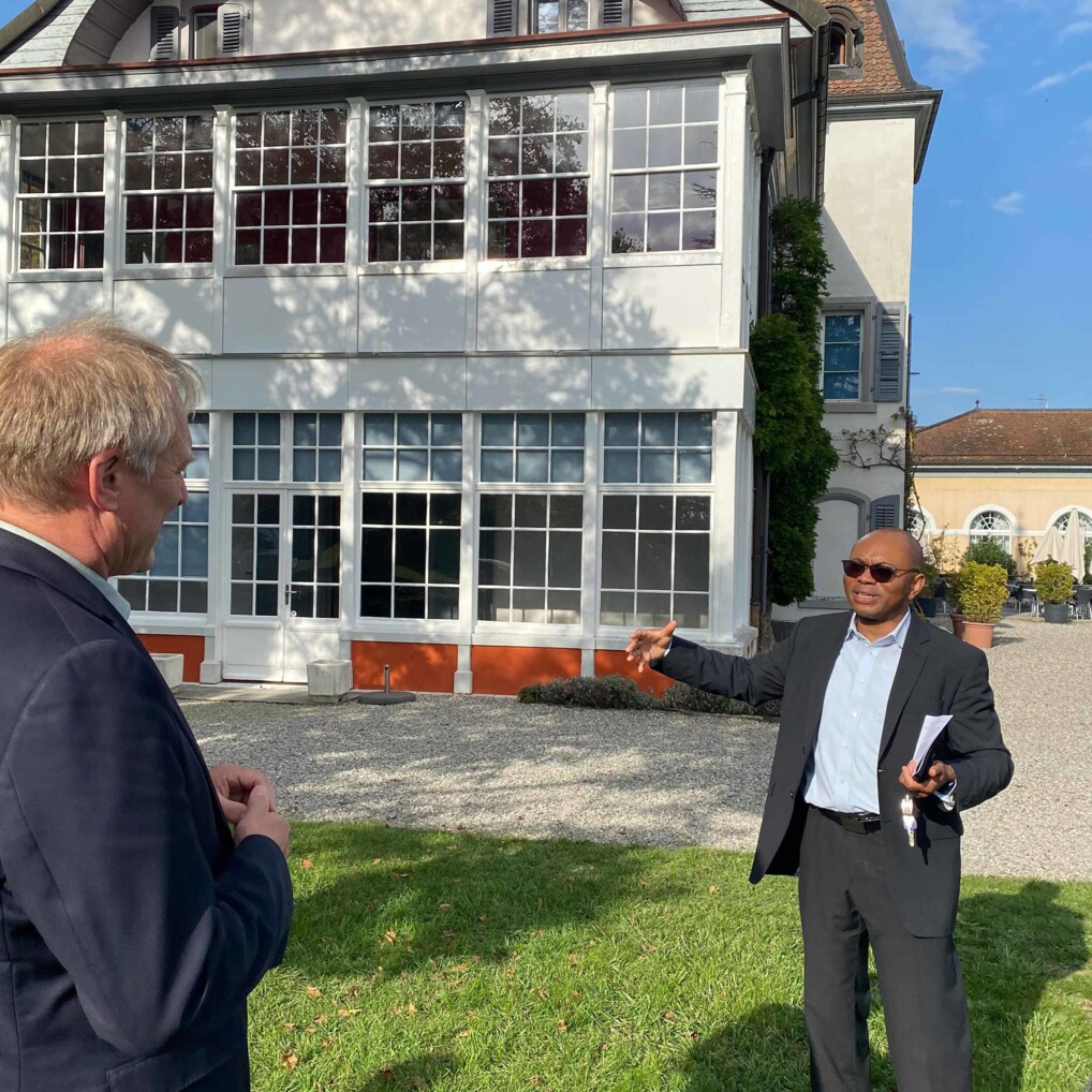 Biskop Henrik Stubkjær i samtale med Fader Lawrence på Det økumeniske institut i Bossey. Alle fotos: Betty Grønne Ahrenfeldt.