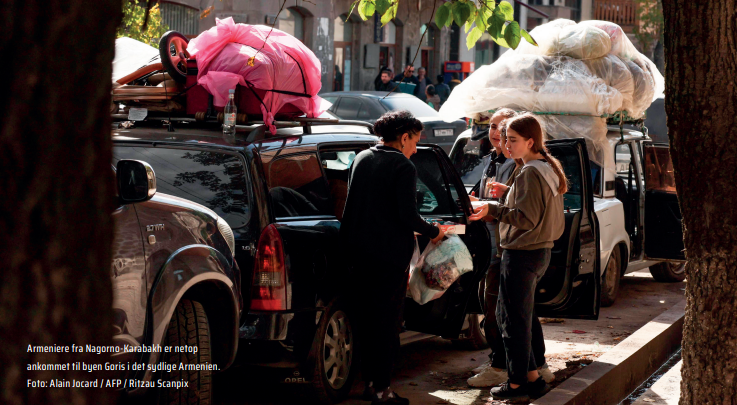 På grund af konflikten i grænseområdet Nagorno-Karabakh er over 100.000 armeniere ifølge FN flygtet fra deres hjem i området. Folkekirkens nødhjælps samarbejdspartnere i området fortæller, at ”familier er brudt op med ganske få ejendele, og at de både er fysisk og mentalt udmattede af flere måneders blokade og pres.”