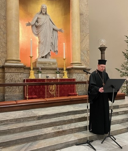 Sergiy Berezhnoy taler ved den ukrainske julegudstjeneste i Københavns Domkirke lørdag 7 januar 2023. Foto: Lucas Skræddergaard.