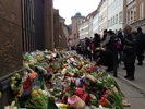 Flowers and mourning visitors at the gate of the Copenhagen Synagogue after the Copenhagen shootings of 14.-15. February. Photo: Elsebeth G. Gjesing.