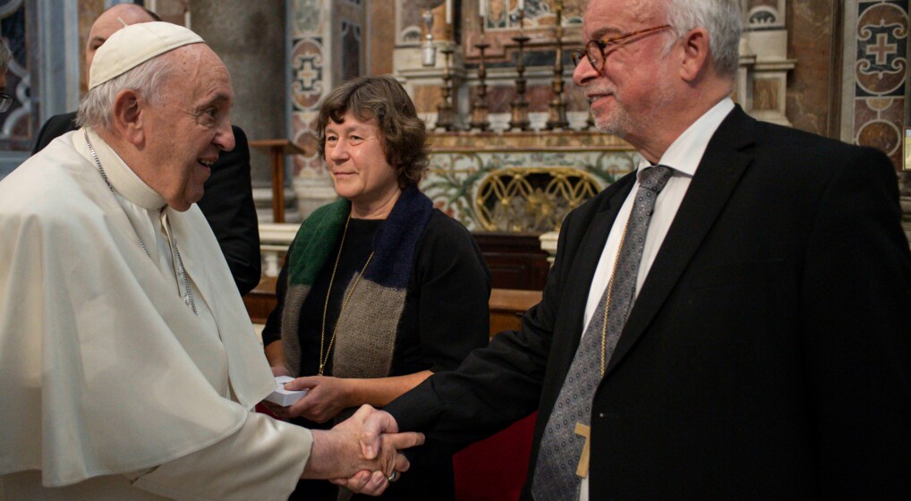 The participants of the study trip got the opportunity to personally greet Pope Francis, who gave each participant a commemorative medallion in recognition of the fruitful work in the Lutheran-Catholic discussion group.